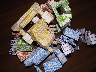 I was sent some templates of scion's Giant robot with Matacho Descorp's pattern by a friend called Carlos R Rodrigeuz. He has brought a sparkle of colour into the templates with five distinct colours Green, Sky blue, Purple, Orange and Mustard Yellow. I think he picked some great colours and they really show scion's toy off, a very big welcome to my collection.... thank you.